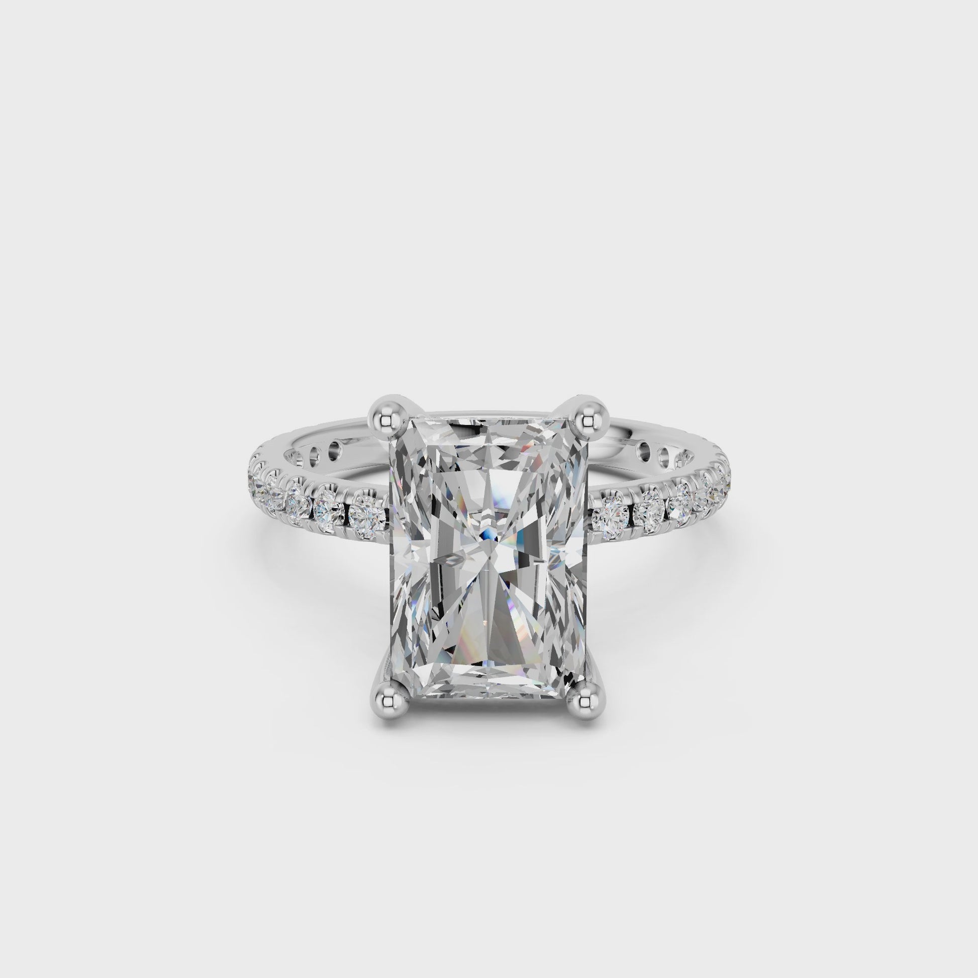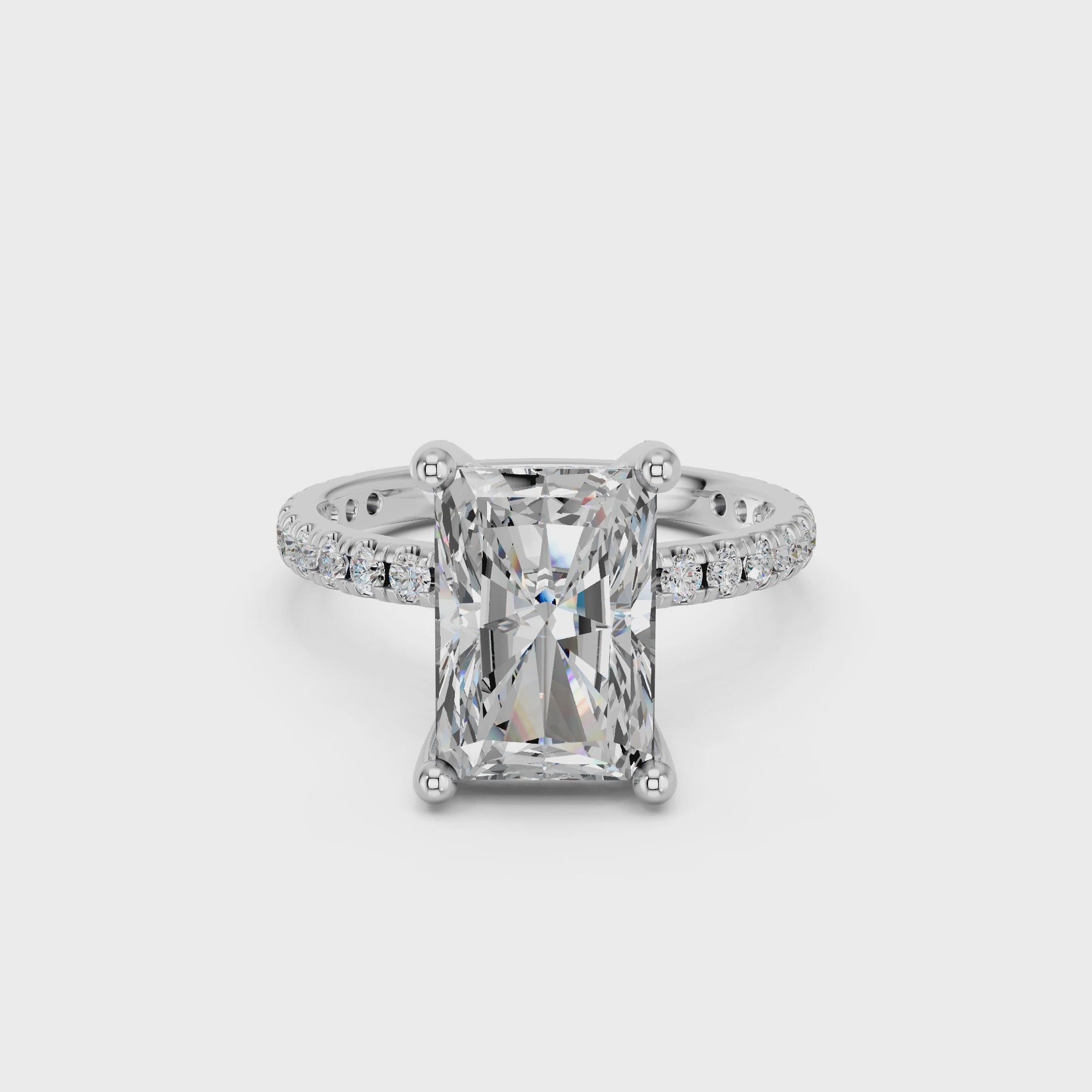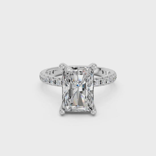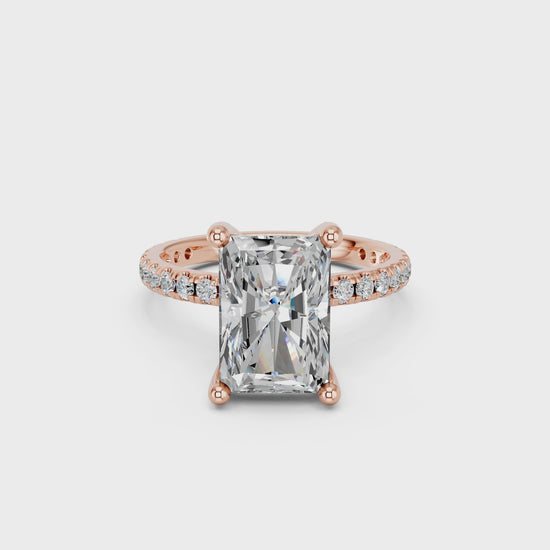 RADIANT HIDDEN HALO WITH SIDE STONE PAVE BAND RING 3.00 CTTW