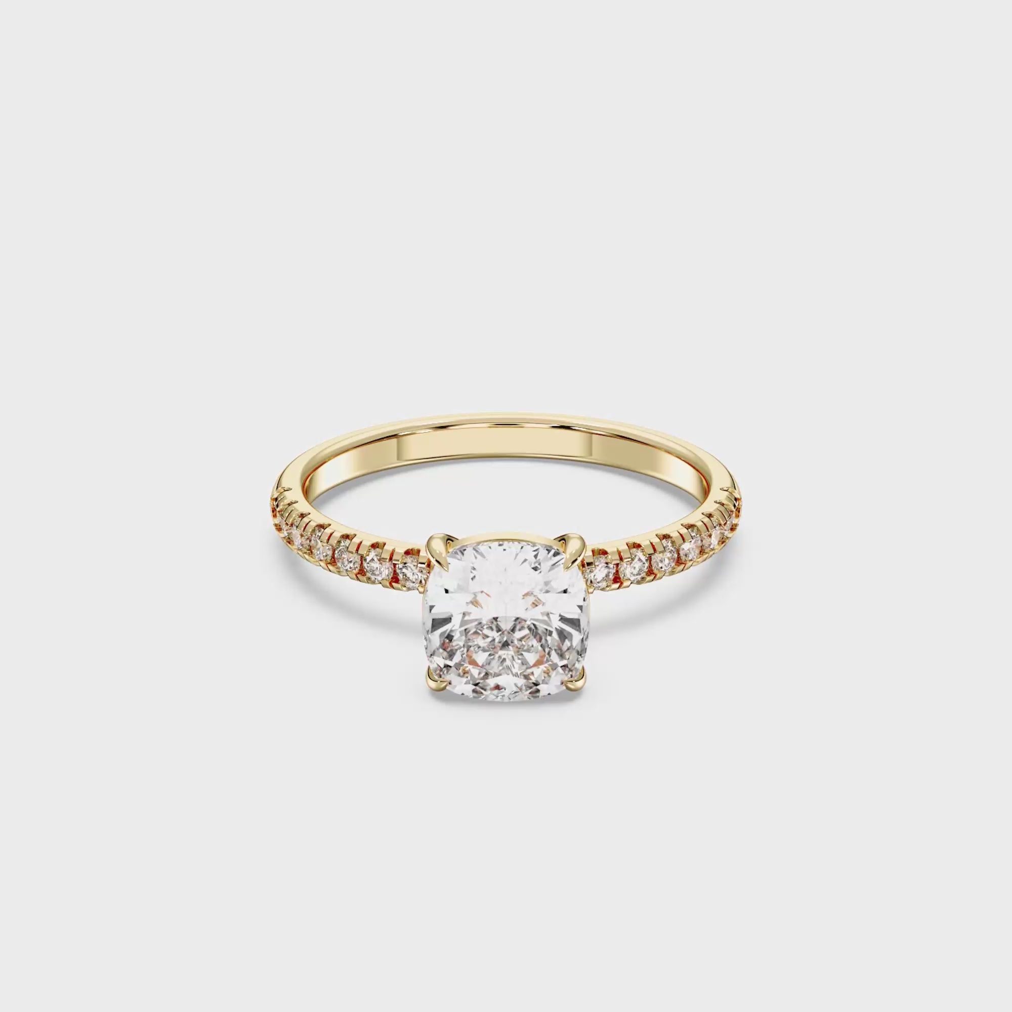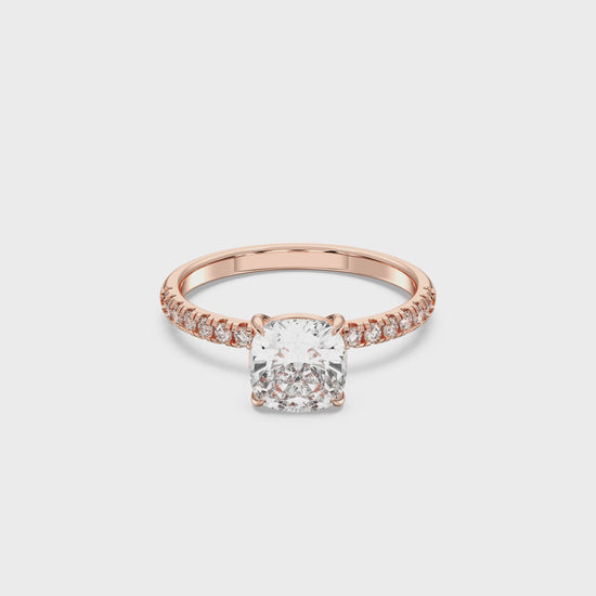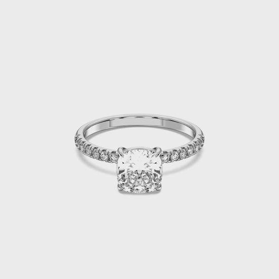 SQ.CUSHION SIDESTONE RING (THIN) 4.00 CTTW